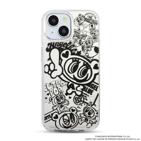 ANGEL BLUE(エンジェルブルー)のキャラがモノクロにプリントされたメタリック背面ケース。