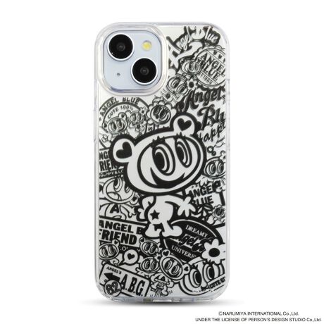 ANGEL BLUE(エンジェルブルー)のキャラがモノクロにプリントされたメタリック背面ケース。