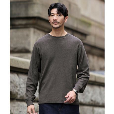 首元はベーシックなクルーネック仕様のため、どんなアウターとも合わせやすいのが魅力。前後差をつけた着丈やサイドスリットなど、さり気ないディテールが抜け感をプラスします。程よくフィット感のあるサイジングで、一枚着としてもお洒落に着られるのはもちろんのこと、重ね着をしてももたつかずスマートに着こなせるニットロンTです。