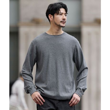 首元はベーシックなクルーネック仕様のため、どんなアウターとも合わせやすいのが魅力。前後差をつけた着丈やサイドスリットなど、さり気ないディテールが抜け感をプラスします。程よくフィット感のあるサイジングで、一枚着としてもお洒落に着られるのはもちろんのこと、重ね着をしてももたつかずスマートに着こなせるニットロンTです。