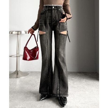 ヘルシーな肌見せカットアウト入りの、トレンドを抑えたデニムパンツ!