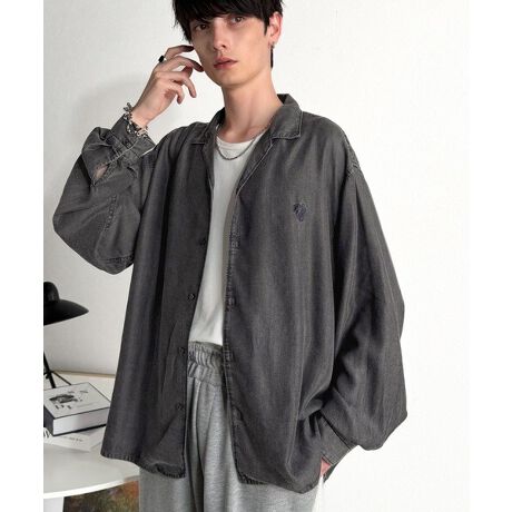 「Loose Fit Open Collar Denim Shirt/ルーズフィットオープンカラーデニムシャツ」