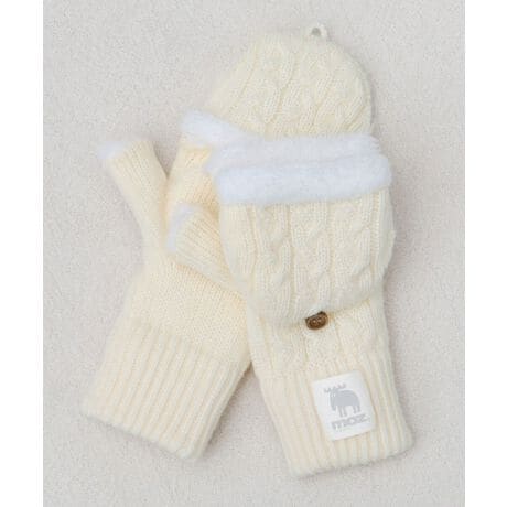 ケーブル編みニット 裏ボア フラップ ミトングローブ 手袋 親指フィンガーレズ・ダイレクトタッチ仕様