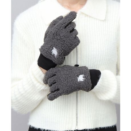 見た目にも暖かみのあるシープボア素材を使用した、5本指仕様のグローブ。ブランドロゴ刺繍がワンポイントに。