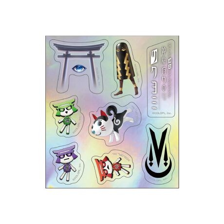 【神魔狩りのツクヨミ】ホログラム加工が見る角度できらめくステッカーです。「オオカミ」や「ツキモノ」たちが神秘的に輝きます