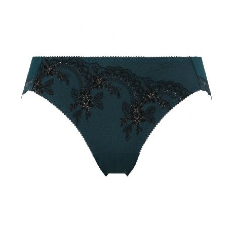 夜に香る「ナイトジャスミン」の花をモチーフに、ホリデーシーズンに合わせたデザインです。ナイトジャスミンは星のような形の花と尖った形の葉っぱが特徴的な植物です。ナイトジャスミンの花をメインに幾何学模様を組み合わせ、花の中心の星がポイントの刺しゅうレース、ナイトジャスミンの葉っぱをイメージしたボタニカルプリントを組み合わせたレースをフロントに使用しています。