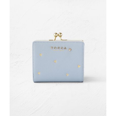 小さなハートたちを全体に散りばめたデザインが大人可愛い、二つ折りウォレット。箔押しのハート柄の中に1つだけメタルパーツが潜むリズミカルでリュクスなテクスチャーがおしゃれで、ロマンティックなムードとTOCCAならではのセンスが光ります。ベースには傷が目立ちにくく、落ち着いた風合いの型押しレザーを使用。内側にはニュアンスカラースムースレザーをチョイスし、開けたときのさりげない華やかさをプラスしています。