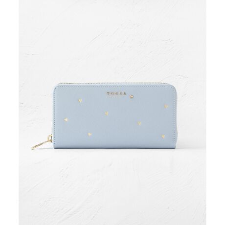 小さなハートたちを全体に散りばめたデザインが大人可愛いロングウォレット。箔押しのハート柄の中に1つだけメタルパーツが潜むリズミカルでリュクスなテクスチャーがおしゃれで、ロマンティックなムードとTOCCAならではのセンスが光ります。