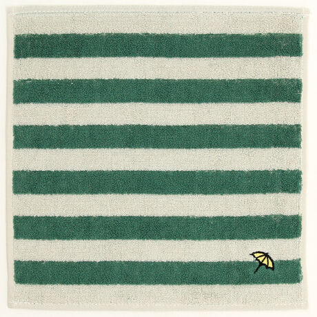 さりげないおしゃれを楽しめる、ボーダー柄と傘のワンポイント刺繍が魅力のカジュアルなタオルハンカチ。ふんわりとした肌触りの良い素材で毎日使いたくなる心地よさ。