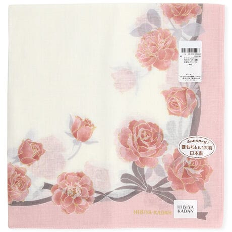 ヒビヤカダン 大判 プリントハンカチ(58cm)バラとリボン 【日比谷花壇】
