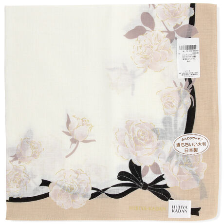 ヒビヤカダン 大判 プリントハンカチ(58cm)バラとリボン 【日比谷花壇】