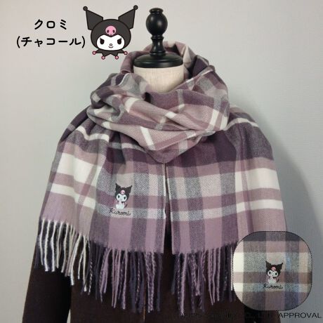 サンリオキャラクターズ/刺繍入り/ストール/チェック柄/マフラー/クロミ/ハンギョドン/シナモロール
