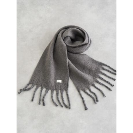 [型番:25570355918]ふっくらとしたボリューム感が可愛らしいマフラー。シンプルな無地の色合いは、どんなスタイリングにもあわせやすいデザインです。生地端のフリンジが華やかな印象をプラス。寒い季節のお出かけスタイルに大活躍してくれるアイテムです。