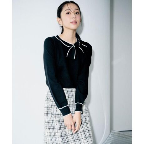 ・ボウタイ部分は取り外し可能で、リボンを外せばシンプルなクルーネックニットとしても着用可能。