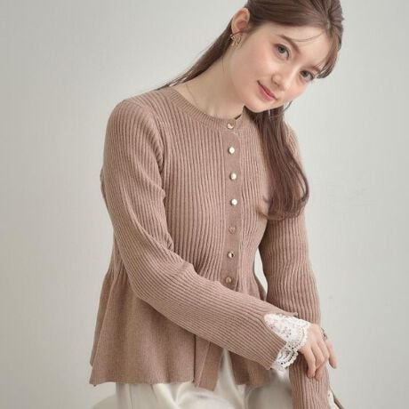 ニットの素材感と袖口のレースデザインが可愛く、冬のお出かけにぴったりの一枚です〇