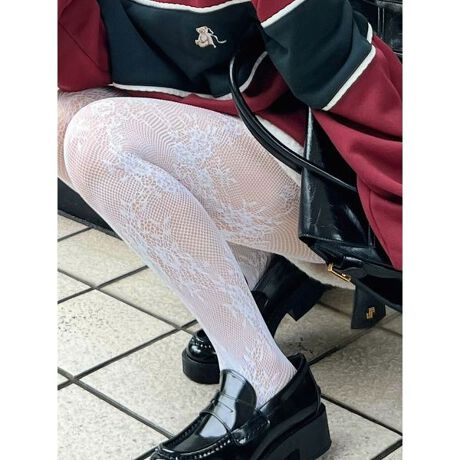 <b>【足元にさりげない華を添えるレースタイツ】</b>