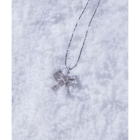 繊細なリボンモチーフが上品なネックレス。華奢なビジューをつけたリボンモチーフが華やかなデザインです。キラキラと反射するジルコニアの輝きが、品よく存在感のあるアクセサリーです。ご自身用はもちろんプレゼントにもお勧めです。【cubicシリーズ】cubicジルコニアはダイヤモンドに極めて近い輝きをもつ人工石でダイヤのように多数のカットを施す事でより繊細で強い輝きをはなちます。Cubicシリーズはグレーのボックスが付属しております。※撮影時照明の関係により、色味が違って見える場合がございます。またパソコン・スマートフォンなどの環境により、若干製品と画像のカラーが異なる場合もございます。予めご了承ください。商品の色味は、商品単品画像をご参照下さい。※商品画像はサンプルのため、色味やサイズ等の仕様に変更がある場合がございますので、予めご了承ください。
