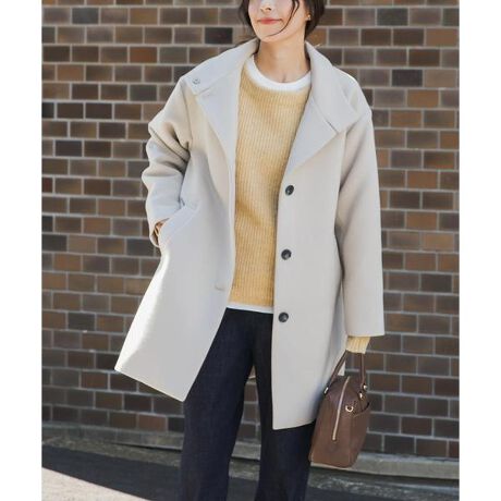 首元まで包み込む、上品な蓄熱スタンドカラーコート