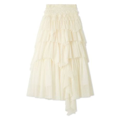 <b>【シアー感の美しいチュールをランダムにたっぷりと重ねてお作りしたドレッシーなチュールボリュームスカート】</b>