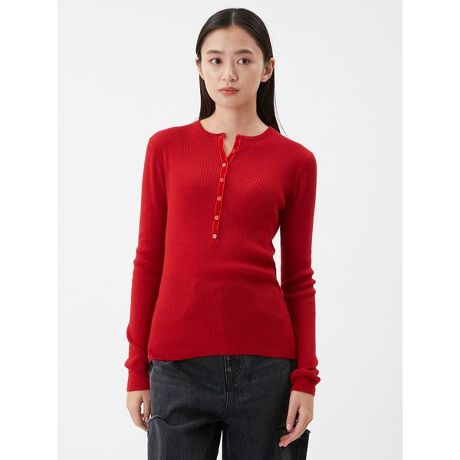 <b>【人気が続くヘンリーネック。ほんのりシアーなリブニットで、レイヤード万能な一枚】</b>