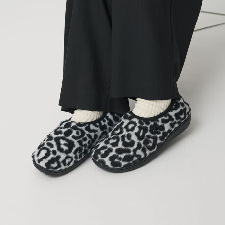 ふかふかとした履き心地の良さはそのままに、踵つきデザインに進化した新モデル「VAMP」のレオパード柄。