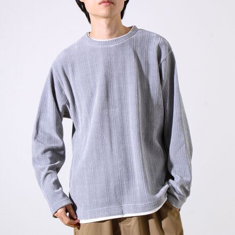 #FREDY&GLOSTER #フレディアンドグロスター #フェイクレイヤード #シェニール #モール素材 #ベロア調 #秋冬トップス #大人カジュアル #リラックススタイル #ユニセックス #レイヤード風カットソー #柔らか素材 #上品カジュアル