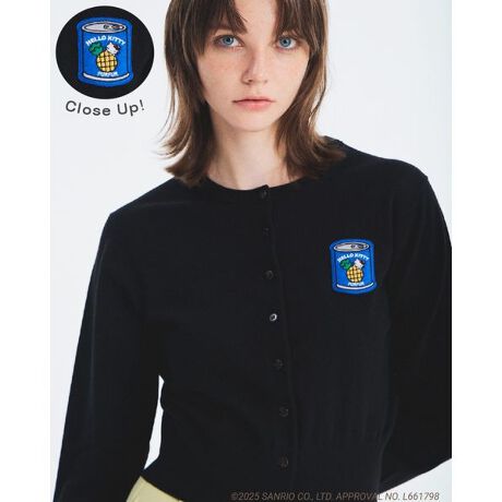 ハローキティとのコラボレーション。フルーツやトマトの缶詰をモチーフにしたワッペンがアイコニックでキュートなクルーネックカーディガン。上品なデザインにユーモラスなワンポイントを加え、大人の遊び心を表現しました。コンパクトなサイズ感で、さまざまなボトムスとバランス良く合わせやすい一着です。