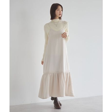 サテン調素材の上品なツヤ感が目を惹くキャミソールワンピース。切り替えラインからふわっと広がる立体的なシルエットが女性らしさを演出します。合わせるインナーやアウターでアレンジを楽しめる着回し力の高さも魅力的。きれい目な無地カラーと、スタイリングのアクセントにぴったりなドット柄のアソート展開で、お好みのデザインをセレクトいただけます。透け感[ややあり]