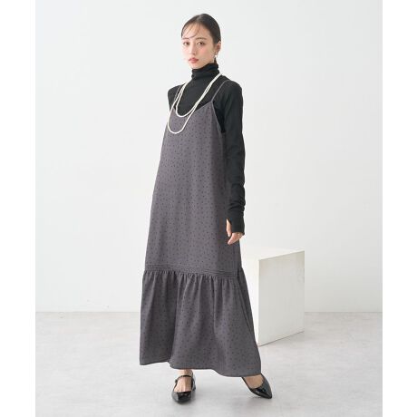 サテン調素材の上品なツヤ感が目を惹くキャミソールワンピース。切り替えラインからふわっと広がる立体的なシルエットが女性らしさを演出します。合わせるインナーやアウターでアレンジを楽しめる着回し力の高さも魅力的。きれい目な無地カラーと、スタイリングのアクセントにぴったりなドット柄のアソート展開で、お好みのデザインをセレクトいただけます。透け感[ややあり]