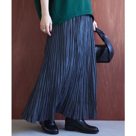 デイリーのコーディネートを格上げするプリーツデザインスカート。光沢感のあるライトな素材は着こなしに上品さをプラスしながら、リラクシーな穿き心地を叶えます。タックインもすっきり決まるギャザー入りのウエストに総ゴム仕様の穿きやすさも嬉しいポイント。スニーカーでカジュアルにはもちろん、ブーツを合わせたきれい目スタイルもおすすめです。透け感[なし]