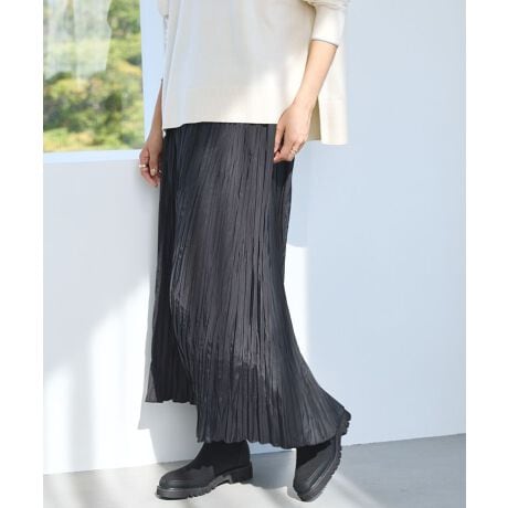 デイリーのコーディネートを格上げするプリーツデザインスカート。光沢感のあるライトな素材は着こなしに上品さをプラスしながら、リラクシーな穿き心地を叶えます。タックインもすっきり決まるギャザー入りのウエストに総ゴム仕様の穿きやすさも嬉しいポイント。スニーカーでカジュアルにはもちろん、ブーツを合わせたきれい目スタイルもおすすめです。透け感[なし]