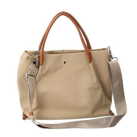 【毎日に頼れる優秀バッグ】軽やかで使い勝手抜群!「laportadizucchero シワ加工ナイロン2WAYハンドバッグ」【整理上手な3層構造】中央のメインルームに加え、前後にあおりポケットを配置した3層仕立ての優れた収納力。【毎日に寄り添う設計】内外に複数のポケット付きで、荷物の仕分けもストレスフリー。B5ノートがぴったり入るサイズ感。【雨の日も気軽な素材感】軽量で撥水性のあるナイロン素材を採用。雨や汚れにも強く、お手入れが簡単なのが嬉しいポイント。(※)完全防水ではありません。【自分らしさで持ち方自在】取り外し可能なショルダーベルト付き。手持ちも肩掛けもスタイルに合わせて楽しめる2WAY仕様。【さりげないアクセント使い】本体とのコントラストが効いた合皮のパーツが上品な印象。シンプルすぎない大人のこなれ感を演出。