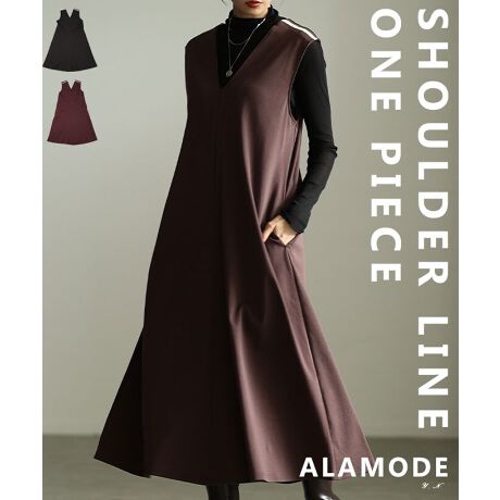 【ワンピース】レディース ロング丈 Vネック シンプル ノースリーブ 春 秋 冬 カジュアル