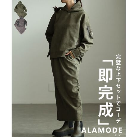 MA-1風のフーディーとスカートがセットになったアイテムはコーディネート要らずですぐにおしゃれが完成する優れもの!セットは勿論単品使いで更にコーデの幅が広がります◎