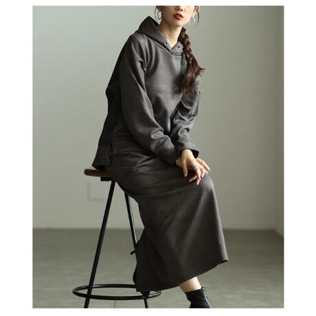 【セットアップ】 トップス トレーナー プルオーバー スカート 2点 チャコール ダークカーキ 秋服