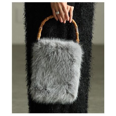 【小物】 バッグ ハンドバッグ フェイクファー 小物入れ 異素材 バンブー グレー ピンク ベージュ