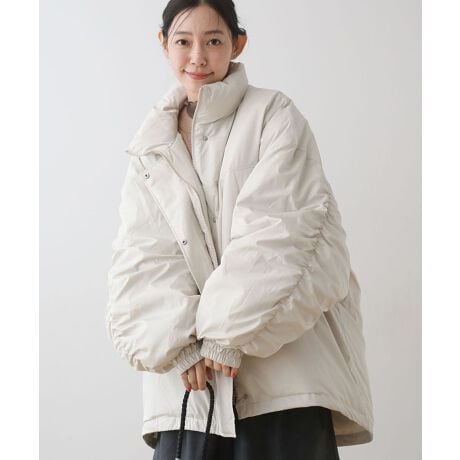 ふっくらとした中綿入りのボリュームシルエットが魅力的なモンスターコート。大胆に前後差を付けたヘムラインや背中心のギャザーでアクセントを加えたバックコンシャスなデザインが今年らしい旬スタイルを叶えます。裾に配したドロストでシルエットアレンジ出来るのもお洒落なポイント。ベーシックなカラー展開で着回しやすく、デイリーユースに活躍してくれるおすすめの1枚です。透け感[なし]