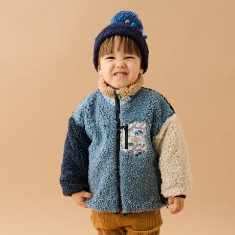シープボアとリバティファブリックス「キューフォーザズー」を組み合わせたブルゾンです。