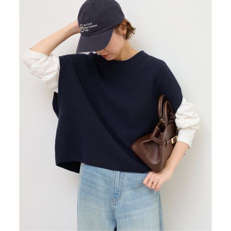 持っているハミルトンウールのセーターが軽く暖かいので、ハミルトンウールのベストを探していました。身幅は広めですが、フレンチスリーブのように肩に沿ってフィットするため、ダボっとした感じにはなりません。