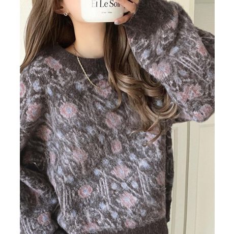 【25AW新作】ヴィンテージライクなデザインで上級見え◎アンティークラグモチーフ柄ニットPO(長袖)