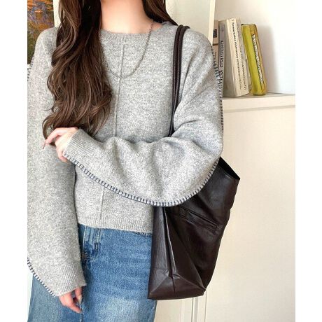 配色ステッチが目を引き、ルーズなシルエットが体型をカバーします。