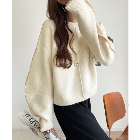 配色ステッチが目を引き、ルーズなシルエットが体型をカバーします。