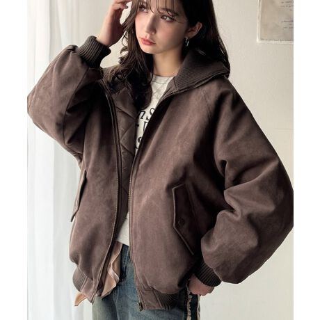 ベーシックなデザインながらも存在感のあるフェイクスエード素材のブルゾンは