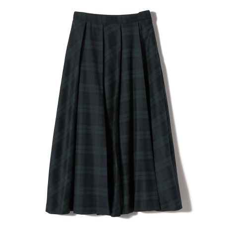 後ろ身頃を1枚パターンにすることで、前後の印象を変えてリズムをつけ真面目なタックスカートに終わらない雰囲気に仕上げてあります。