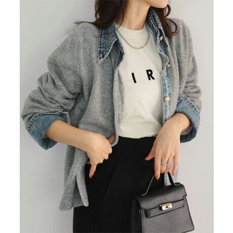 季節の変わり目の羽織りとしても便利で、デニムのカジュアル感とニットの柔らかさが絶妙にマッチした、存在感のあるアイテムです。