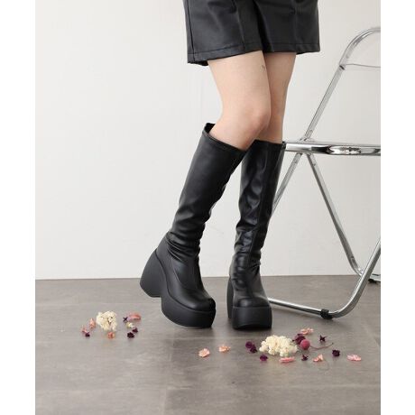 ストレッチ素材で足に馴染みやすく、旬のコーディネートに取り入れやすい万能なロングブーツです。