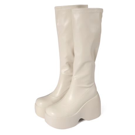 ストレッチ素材で足に馴染みやすく、旬のコーディネートに取り入れやすい万能なロングブーツです。