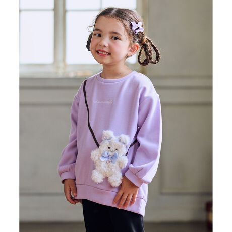 ふわふわのアニマルがポシェット風デザインになった、冬のおでかけにもぴったりのトレーナー。