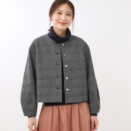 クラシカルなグレンチェック柄とふんわりとしたスリーブが特徴のショート丈ジャコット。