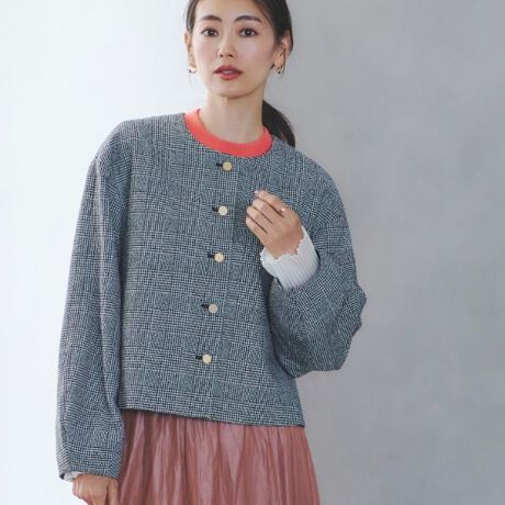 クラシカルなグレンチェック柄とふんわりとしたスリーブが特徴のショート丈ジャコット。